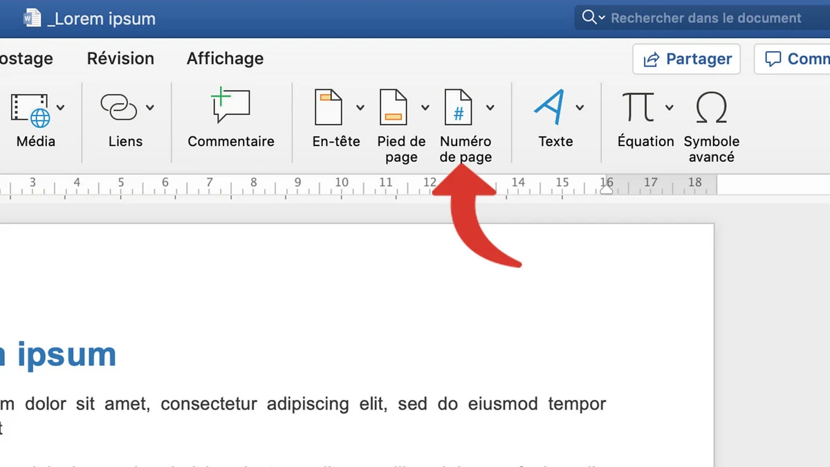 Pour numéroter les pages dun document Word allez dans longlet Insertion dans le menu en haut puis cliquez sur le bouton Numéro de page dans la section En-tête et pied de page.