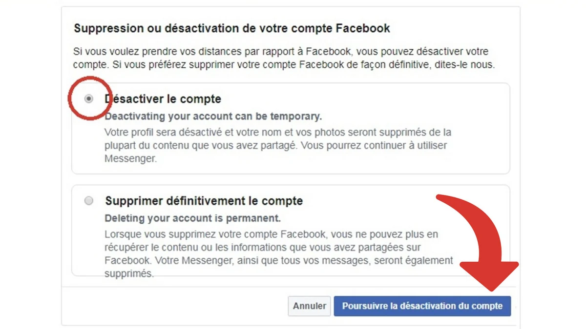 Pour désactiver votre compte. Pour supprimer définitivement votre compte. Jai désactivé mon compte Facebook.