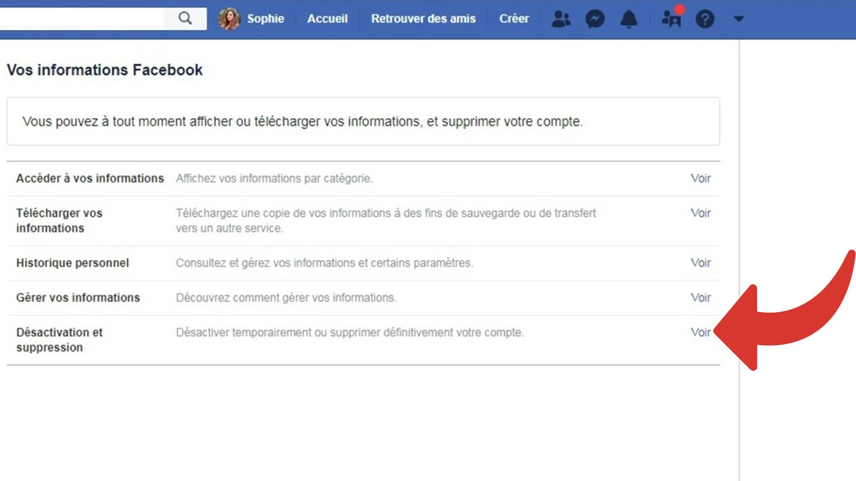 Depuis votre profil principal cliquez sur en haut à droite de Facebook. Toutefois les choses ont changé. Nous allons vous expliquer comment désactiver facilement votre compte ou le supprimer définitivement si vous en avez fini avec les réseaux sociaux.